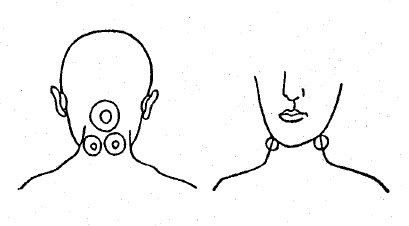 後天的の方は-顎の下の所を見ると、図の如く塊があります。それを圧すと痛い。之が原因でありますから、それを溶かすと治るのであります。